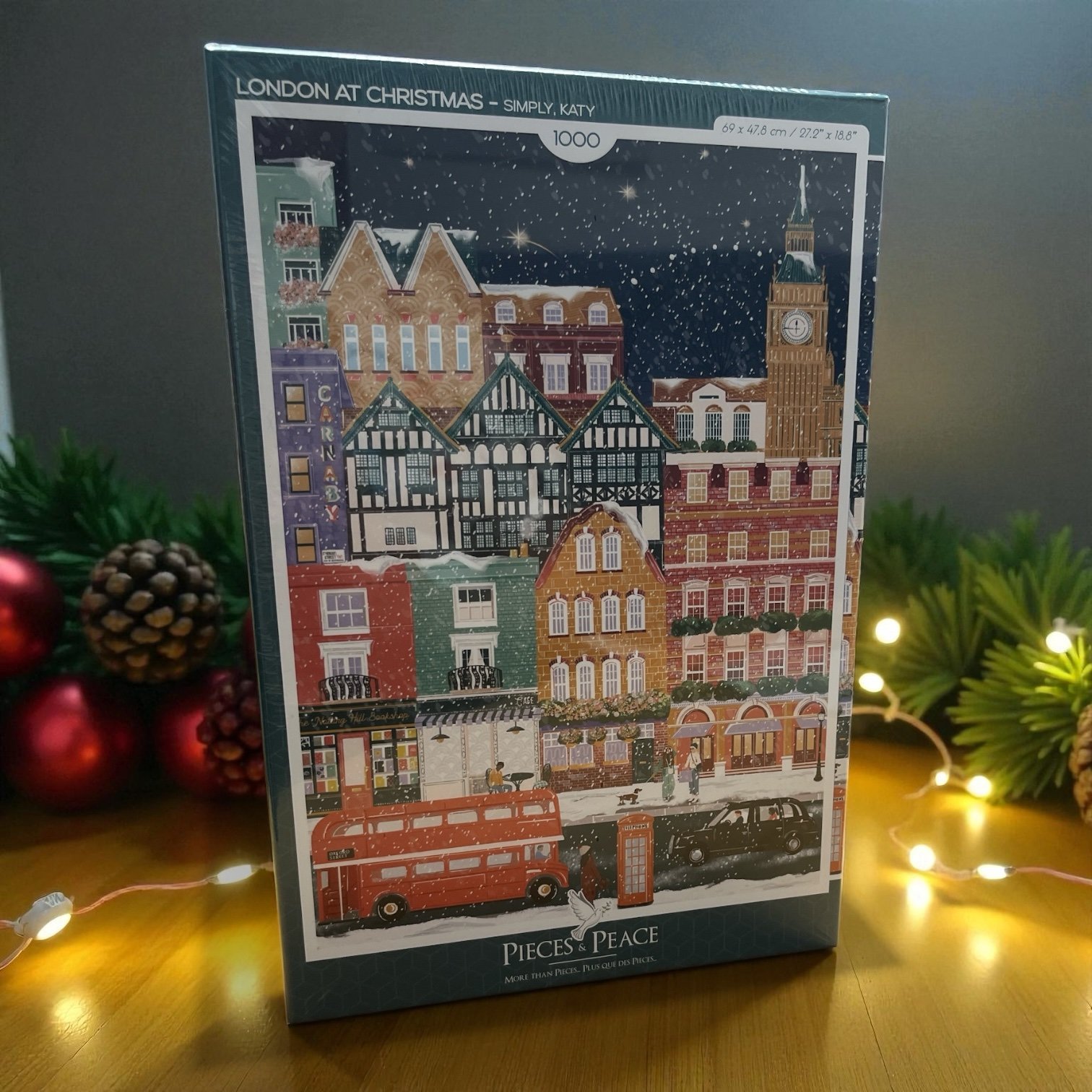 Plongez dans la magie de Noël avec ce puzzle unique inspiré de l’ambiance féerique de Londres en hiver. Big Ben, cabines téléphoniques rouges et marchés illuminés se rassemblent dans une scène pleine de charme et de détails. Fabriqué en France avec un grand soin, ce puzzle allie qualité, tradition et esprit festif pour offrir un moment de détente et d’évasion à toute la famille.
